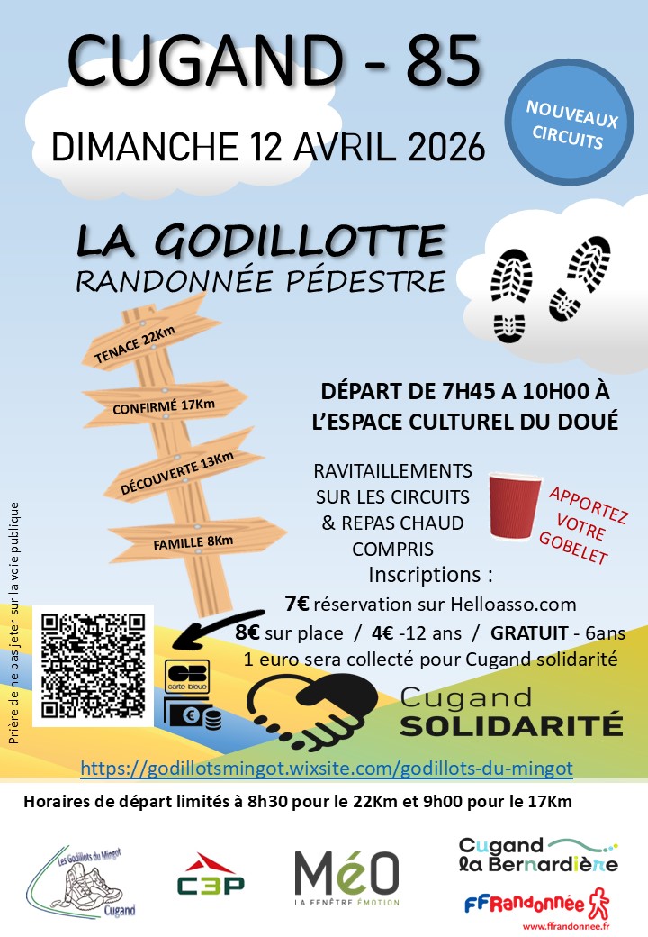 Notre association de marcheurs passionnés à Cugand-la-Bernardière. Découvrez nos randonnées, nos actualités et partagez notre amour de la nature. Rejoignez notre communauté et explorez des sentiers inoubliables avec nous !